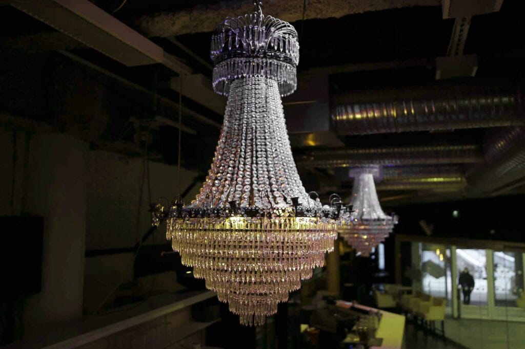 - jättimäisiä kattokruunuja ja vähän pienempiäkin