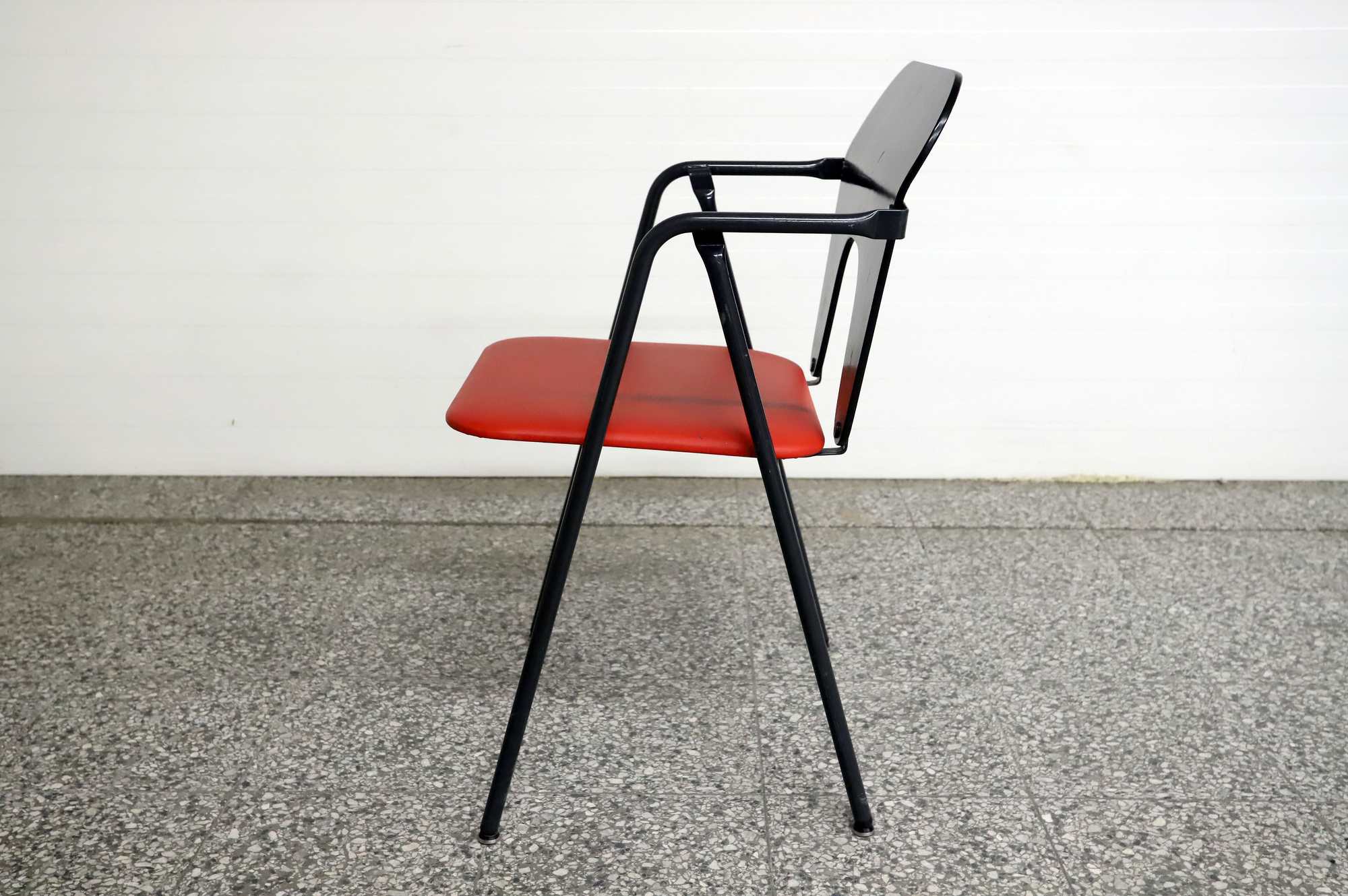 Tuolissa on kolhuja, verhoiluosissa on käytön jälkiä.