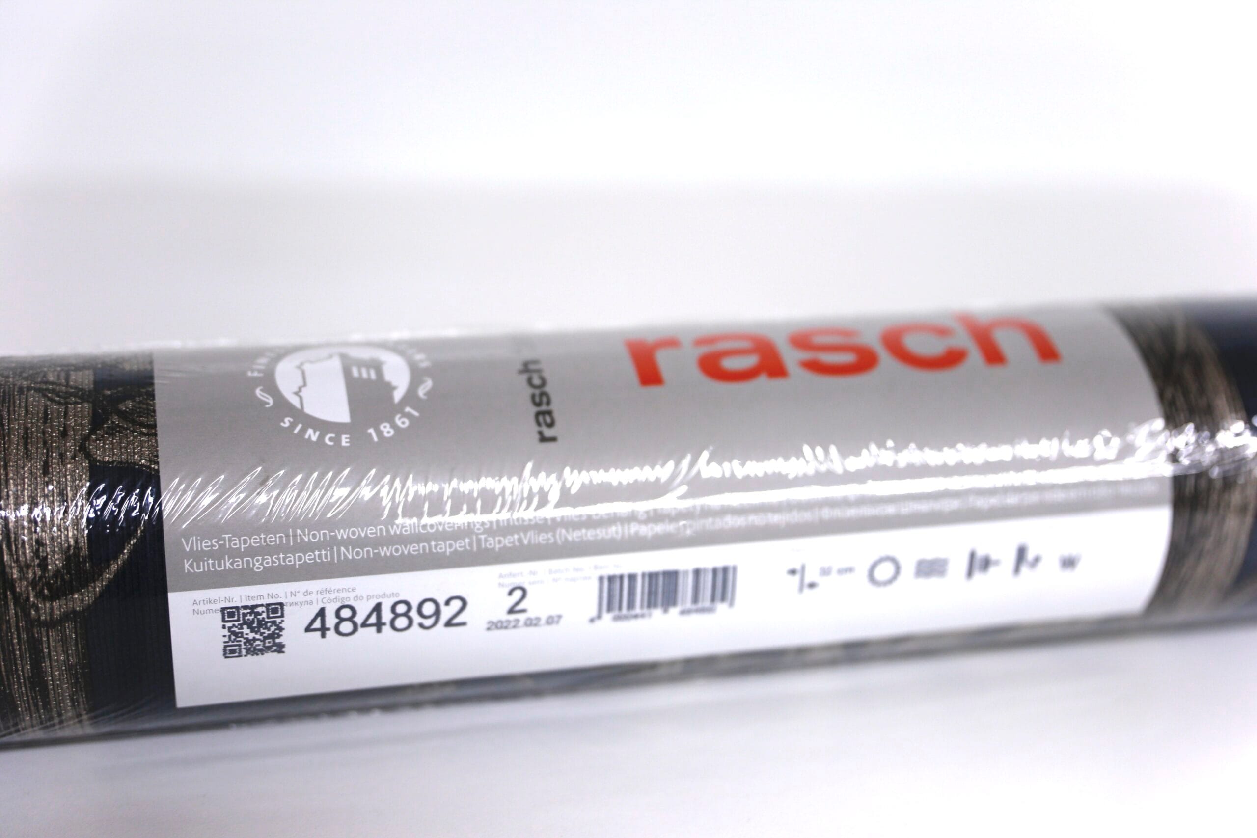 Saksalainen Rasch huipputapetti Rasch. Rullan leveys 53 cm ja pituus 10,05 m. Kuosi 484892. Kuitukangastapetti / Non-Woven.